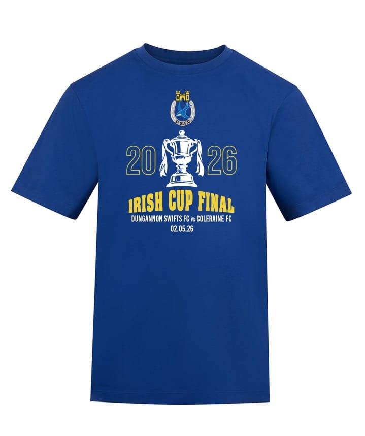 Purchase your Dungannon Swifts Irish Cup Final T Shirt to support your Dungannon Swifts in this seasons Clearer Water Irish Cup Final.